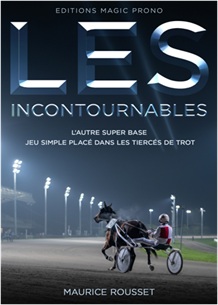 INCONTOURNABLESL'autre super base Une autre super base au jeu simple placé dans les tiercés de trot Ebook totalement inédit - Maurice ROUSSET Voici une nouvelle série d’ebooks, les incontournables sur toutes sortes de paris et de disciplines qui ont fait leurs preuves depuis des dizaines d'années. Cet ebook détecte des favoris comme des outsiders. Cela peut être un cheval de l'ebook "Les incontournables, la super base" ou un cheval de l'ebook "Les incontournables, le cheval du tiercé" mais aussi un autre cheval différent de ces 2 ebooks. L'ebook "Les incontournables, l'autre super base" est le complément indispensable aux 2 ebooks précédemment cités. Au final, un seul cheval à jouer Les systèmes de cet ebook n'ont jamais été employés dans mes pronostics ou dans mes ebooks. Les principaux avantages de la méthode