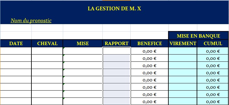 Notez que les fichiers Excel sont vraiment très légers. Ils s'ouvrent presque instantanément. Si vous n'avez pas Excel, vous pouvez utiliser le logiciel compatible Libre office ou WPS Office que vous pouvez télécharger sur Internet. Il est gratuit et la dernière version est particulièrement aboutie. A la question : est ce que la gestion fonctionne sur un smartphone ? J'ai installé l'application Microsoft Office, j'ai ouvert Excel puis la gestion, cela fonctionne. Les calculs se font normalement. Cela fonctionne aussi avec Google Sheets. Dans la notice, la Gestion de Mr.X est aussi expliquée manuellement. La Gestion de Mr.X version 2 sous Excel est à posséder obligatoirement. Tarif exceptionnel de la Gestion de Mr.X version 2 sous Excel (uniquement) : 19 € au lieu 39 €. Offert avec l'achat de la Gestion de Mr.X : 3 mois d'abonnement aux pronostics du site www.turfistes.eu, avec lesquels vous pourrez appliquer la Gestion de Mr.X sur tout ou partie des 11 coups sûrs des Editions Magic prono. Vous avez ainsi de quoi faire. Si vous ne voulez pas utiliser La gestion de MrX sous Excel et préférez la faire manuellement, elle existe aussi en ebook. Elle est vendu séparément de la Gestion de Mr.X sous Excel. Vous pouvez la voir en allant dans la rubrique Ebooks du site www.magicien-du-turf.biz ou en cliquant directement sur le lien ci-dessous :